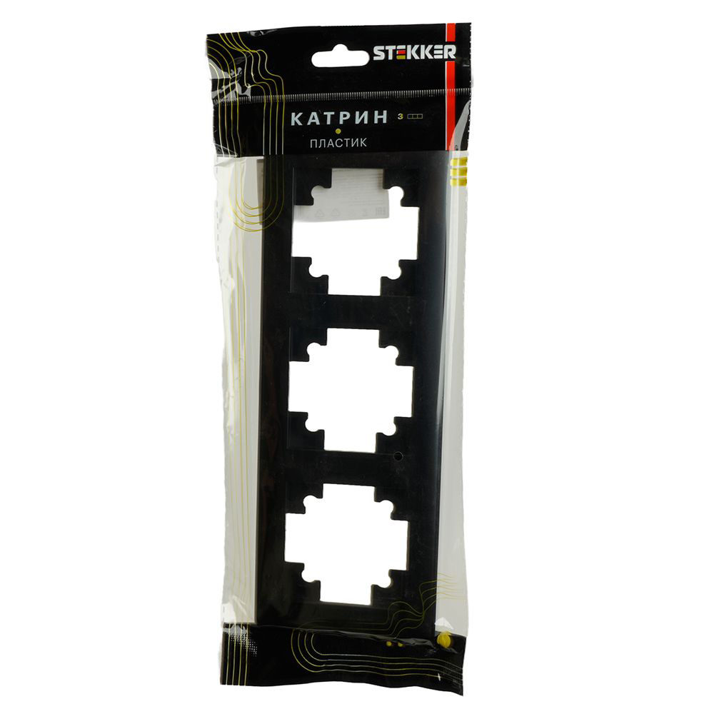 Рамка STEKKER, PFR00-7003-05 3-местная, пластик, серия Катрин, черный 39814