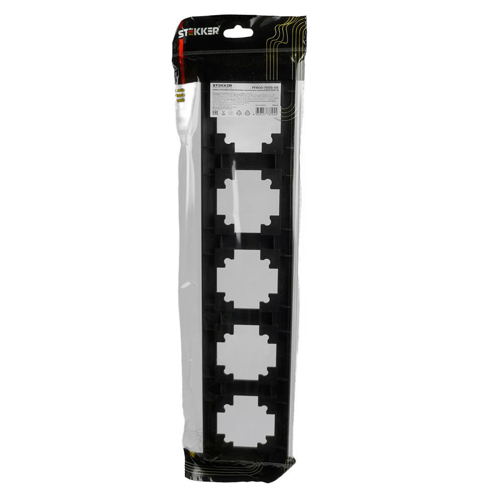 Рамка  STEKKER PFR00-7005-05 на  гнездо, , . Материал: ABS пластик, цвет черный, размер 377,5*83*7мм. Номинальное напряжение , номинальный ток , диапазон рабочих температур ,