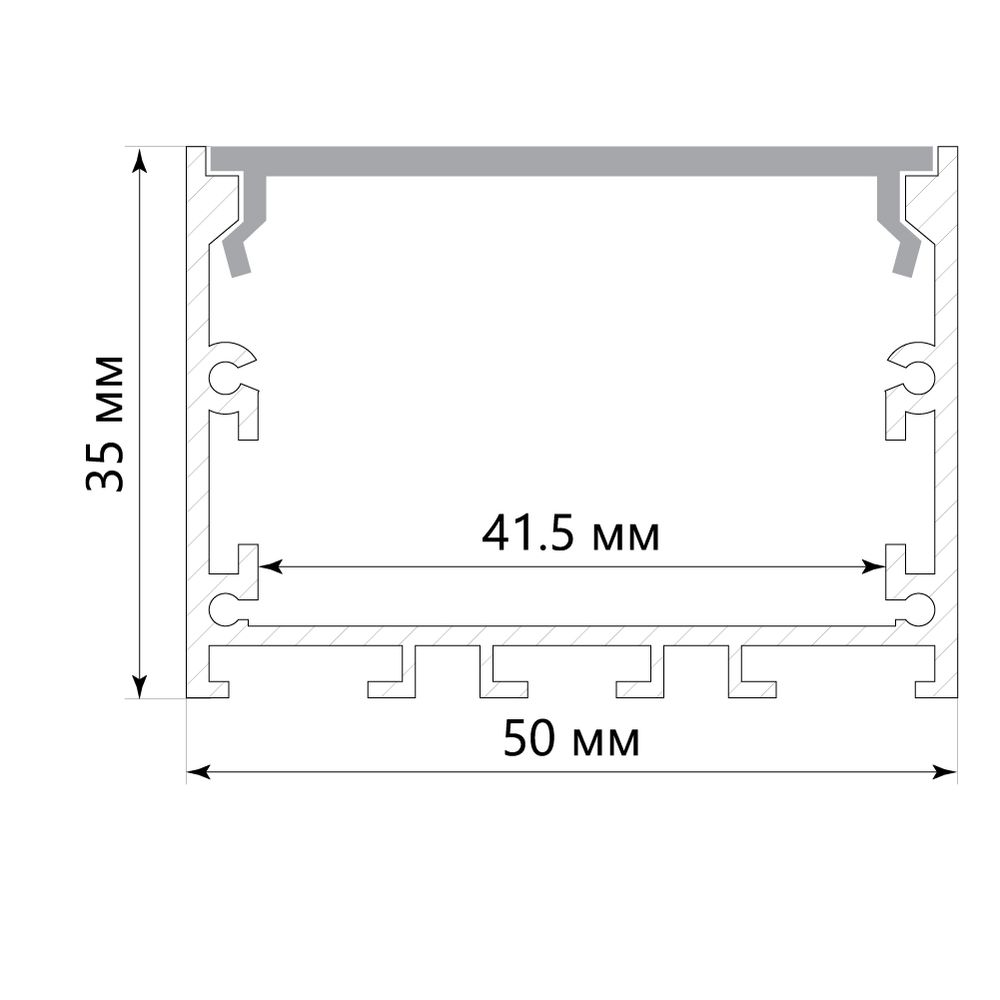 Профиль накладной для светодиодной ленты FERON CAB257 «накладной», цвет черный, в комплекте 2 заглушки + экран + 4 крепежа, 2000*50*35мм