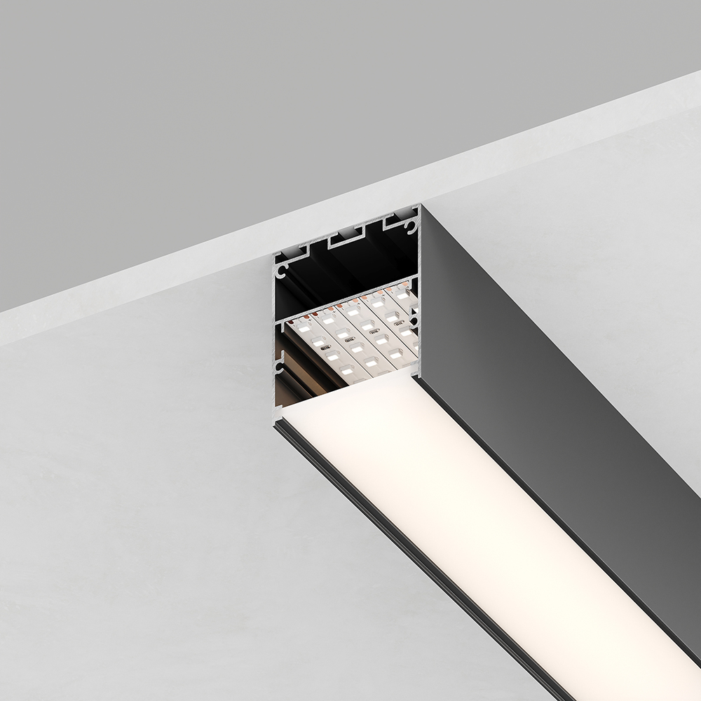 Профиль накладной для светодиодной ленты FERON CAB269 «накладной», цвет черный, в комплекте 2 заглушки + экран + 4 крепежа, 2000*50*50мм