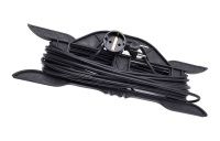 Рекомендуется использовать садовые удлинители на рамке в соответствии с мощностью потребителя и полностью раскрученным кабелем.